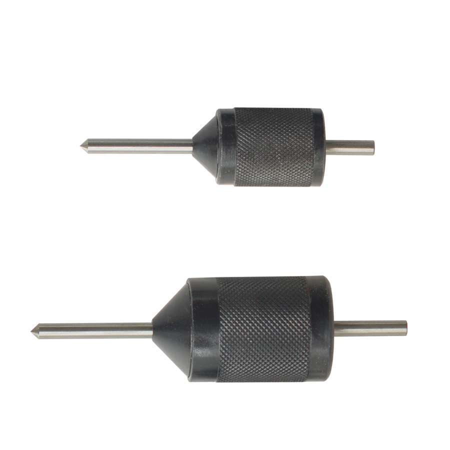 Hardened guide cone is placed into the clean edge of the hole to be transferred. Spring loaded knurled body is pushed against the face of the workpiece, perpendicular to the center line of the hole.