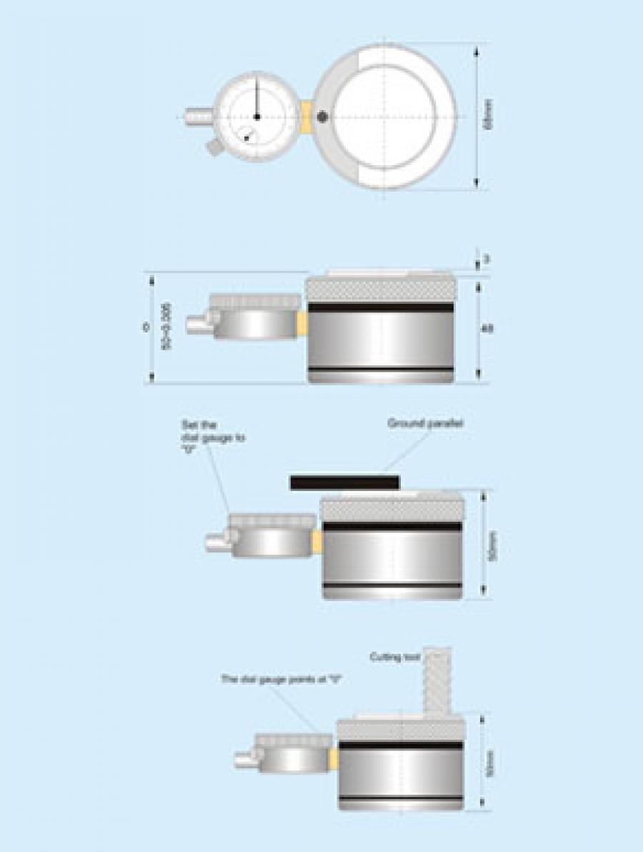 Calibrate the Z-axis-setter by putting a parallel on setter and press it against on the pre-groundsurface and set the dial gauge at "0"